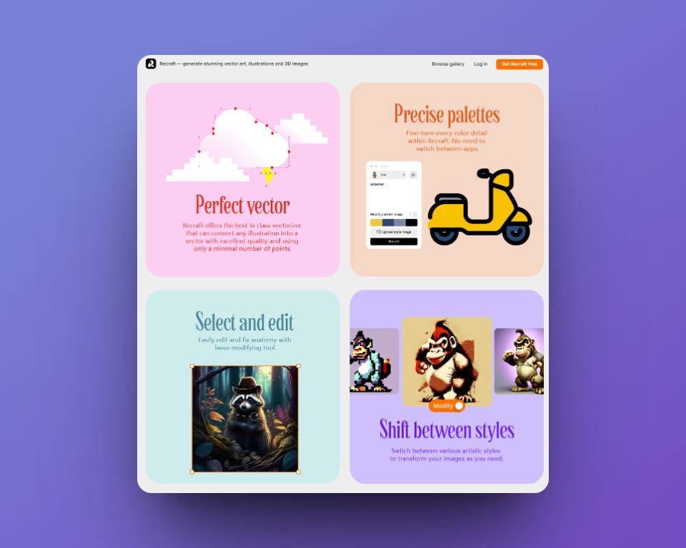 Recraft.ai - 生成矢量图、3D图像等内容的生成式图像服务;